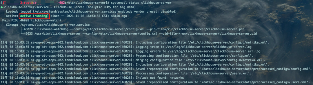 # 启动服务,所有节点都需要执行systemctl start clickhouse-server# 查看CK服务状态systemctl status clickhouse-server