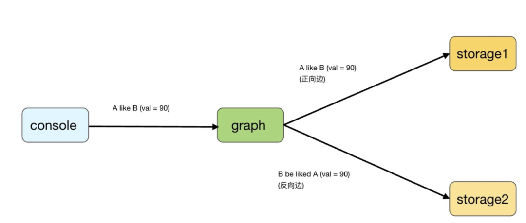 上述语句看上去只写了正向边,并没有输入反向边:这是因为在 Nebula 设计时,当用户插入一条边时,系统会默默地在后台写入一条反向边。