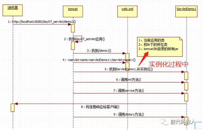 注:访问时,没有自己创建Myservlet1的对象,说明,servlet是tomcat为我们自己创建好了