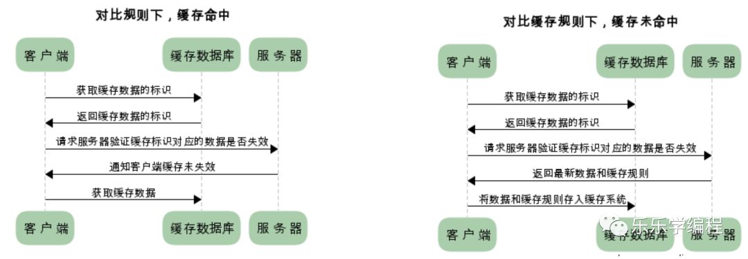 再次请求数据时,客户端将备份的缓存标识发送给服务器,服务器根据缓存标识进行判断,判断成功后,返回304状态码,通知客户端比较成功,可以使用缓存数据。
