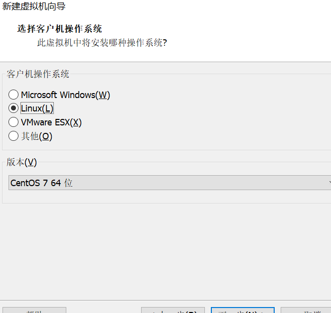 选linux -centos7 64位就行,点击下一步,事实上openEuler和Centos用起来差不多,不过openEuler是华为基于linux内核做的开源系统