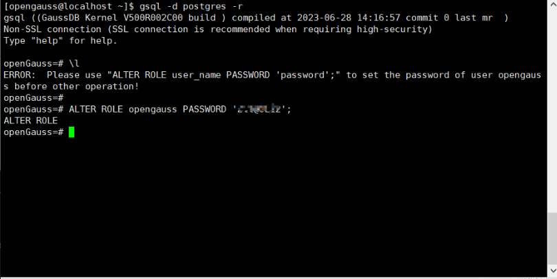 openGauss=# ALTER ROLE opengauss PASSWORD 'xxxxxxx';