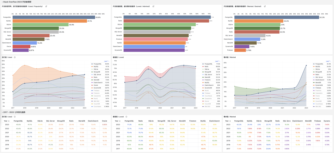 2023 年 StackOverflow 调研结果已经新鲜出炉, 来自185个国家与地区的9万名开发者给出了高质量的反馈。在今年的调研中,PostgreSQL 在数据库全部三项调研指标(流行度,喜爱度,需求度)上获得无可争议的全能冠军,成为真正意义上“最成功”的数据库 —— "PostgreSQL is the Linux of Database!"