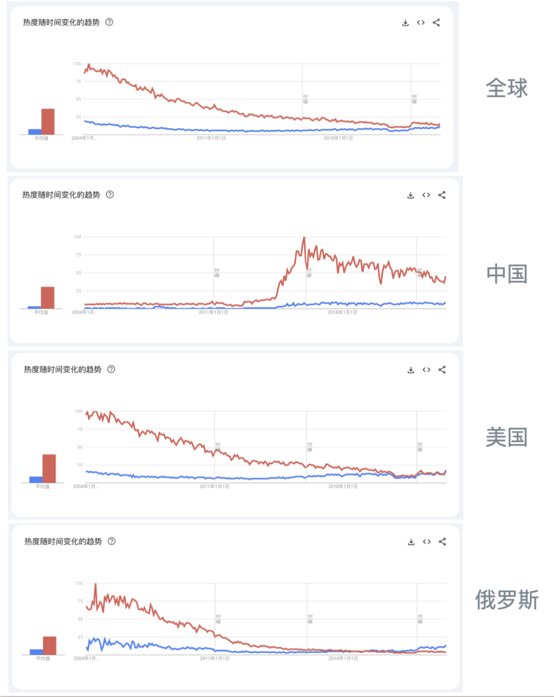 在百度指数上,也能观察到类似的起伏,此外,相比 Google 中国地区热搜趋势,还有额外5年的滞后性。