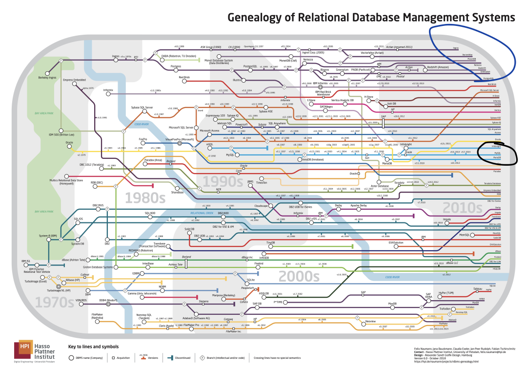无论是全球的数据库谱系图,还是中国国产数据库谱系图,PostgreSQL 的生态都要比 MySQL 繁荣的太多太多。