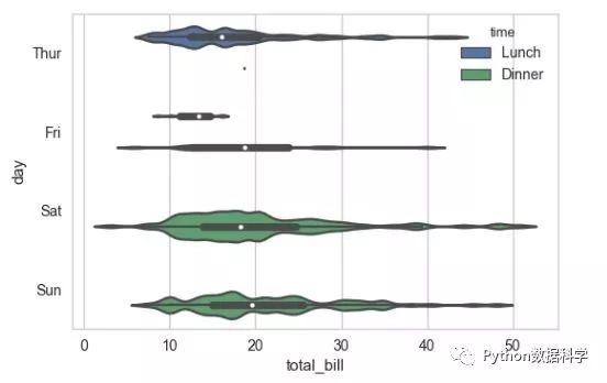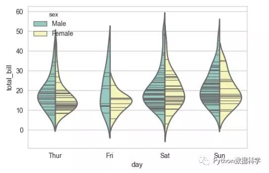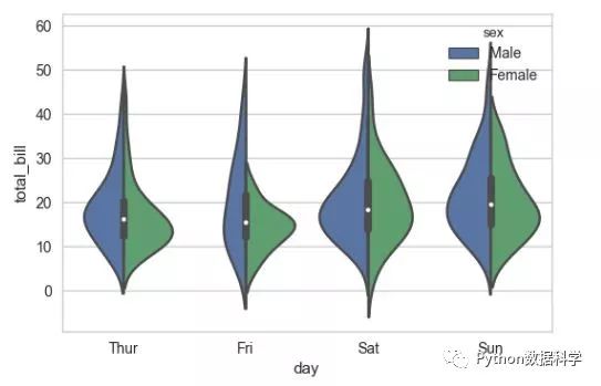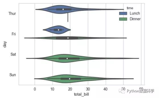 当 hue 的嵌套类型只有两类的时候,也可以使用 split 参数将小提琴分割: