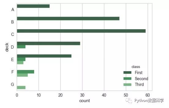 条形图的特殊情况是当您想要显示每个类别的数量,而不是计算统计量。这有点类似于一个分类而不是定量变量的直方图。在Seaborn中,使用 countplot() 函数很轻易的完成: