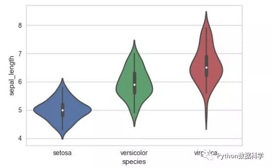 另一种不同的方法是 violinplot() 函数,它结合了箱体图和分布教程中描述的核心密度估计过程: