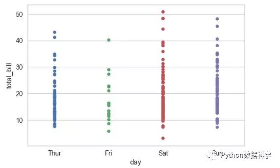 在分类数据的基础上展示定量数据的最简单函数就是 stripplot()。