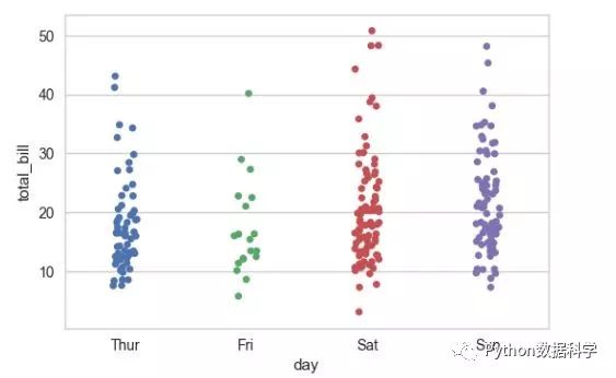 这看上去类似散点图,但不同的是,横坐标是分类的数据,只不过一些数据点上会互相重叠,不便于观察。所以一个简单的解决办法是加入 jitter 参数,调整横坐标位置。