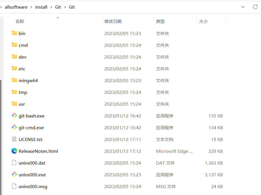 Git安装目录结构如下: