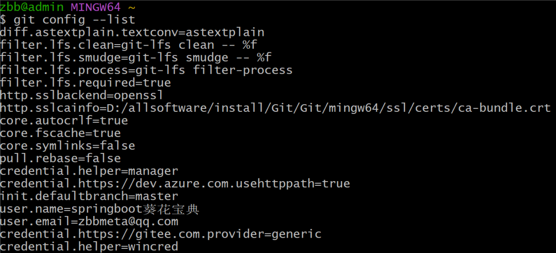 git config --global user.name 'springboot葵花宝典'