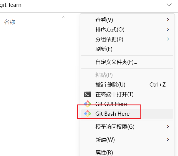 进入git_learn这个目录里面,点击右键打开Git bash窗口