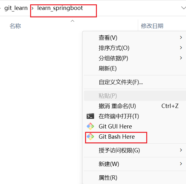 在git_learn创建一个learn_springboot目录,,进入目录打开Git Bash here