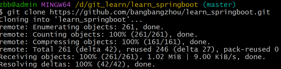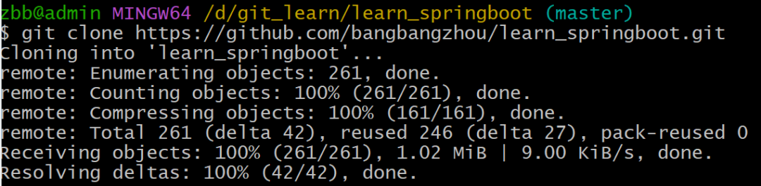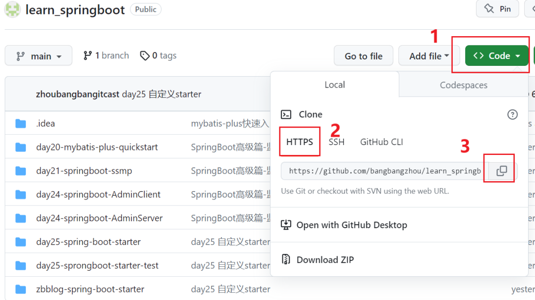 例如复制到的地址:https://github.com/bangbangzhou/learn_springboot.git