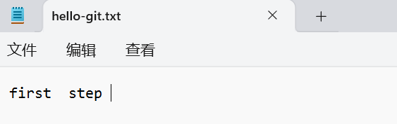 git commit -m '添加 first step 到hello-git.txt' hello-git.txt