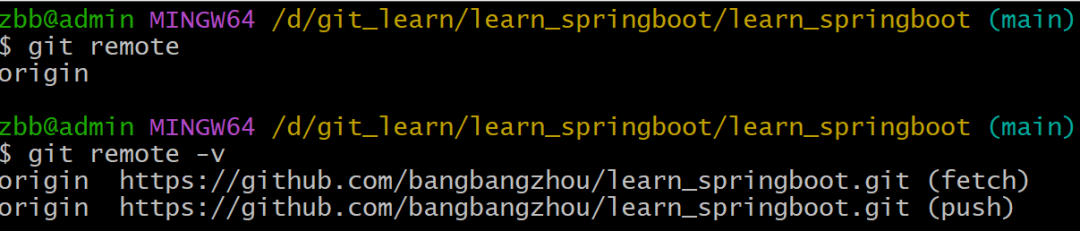 本地仓库配置的远程仓库都需要一个简称,后续在和远程仓库交互时会使用到这个简称