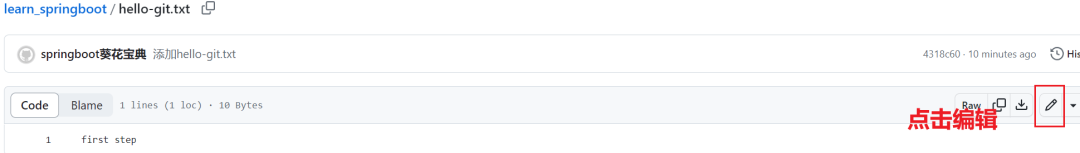 在远程仓库learn_springboot位置点击"编辑",如图操作