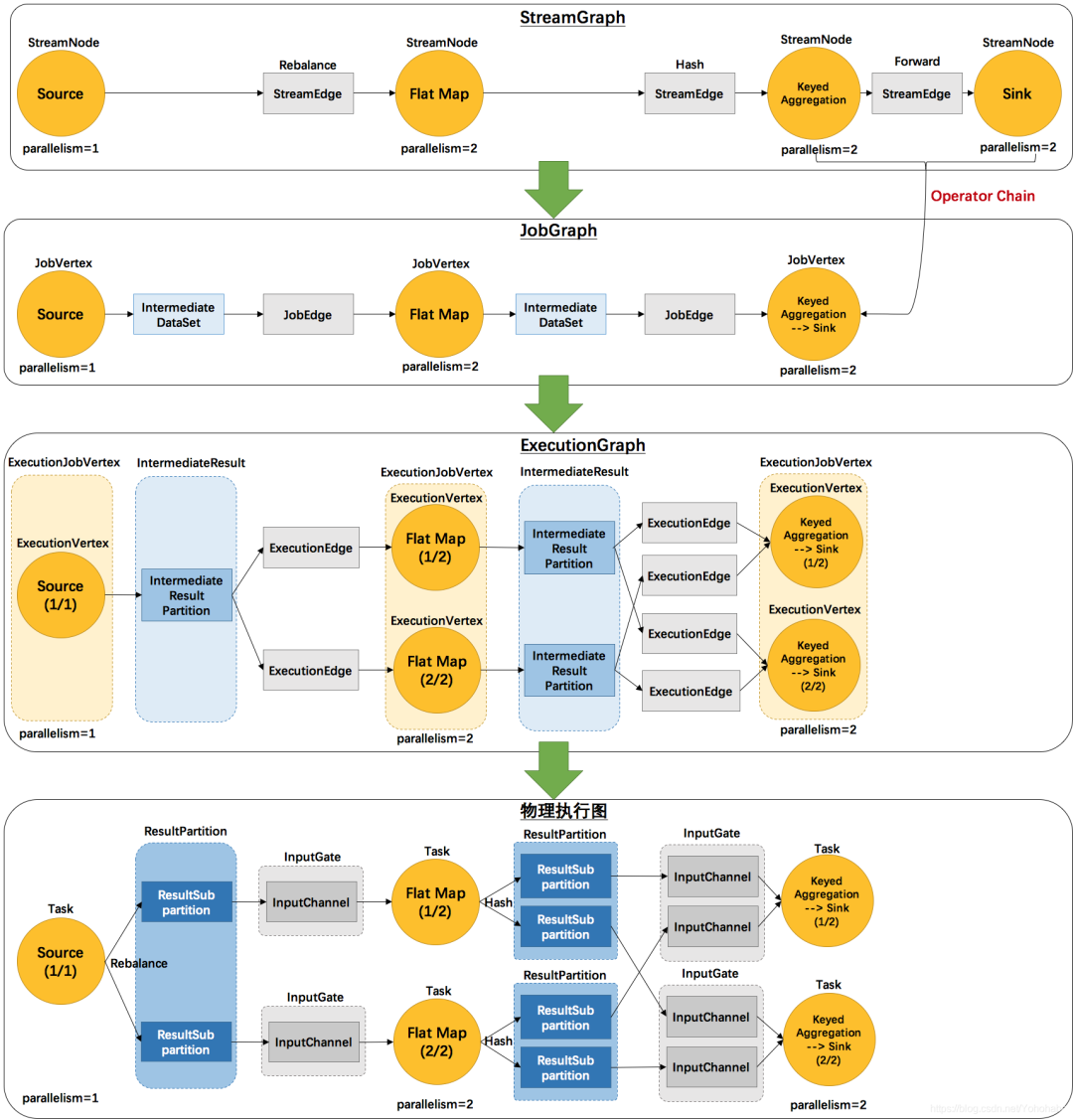 ,还有Flink的四层执行图以及 StreamGraph