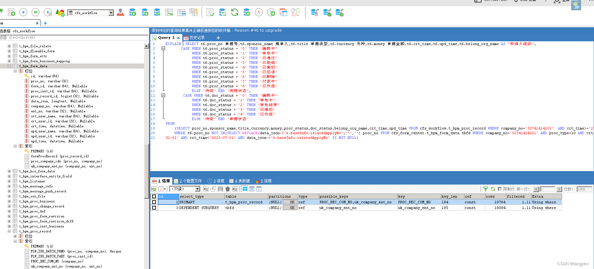 被驱动表虽然走了company_no列的索引,但是该索引效率很低