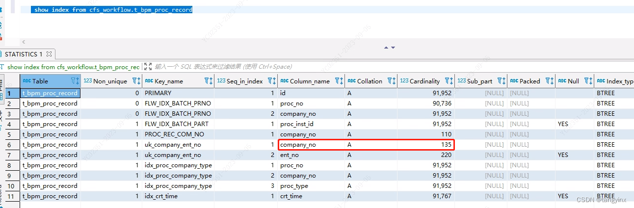 该表预估行数91952,但是company_no的基数只有135,所以选择性并不好