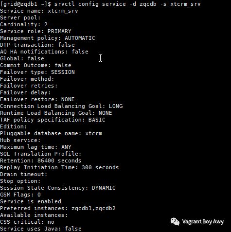 查看service具体配置srvctlconfig service -d zqcdb -s xtcrm_srv