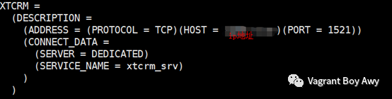 (ADDRESS = (PROTOCOL = TCP)(HOST = x.x.x.x)(PORT = 1521))