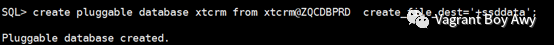 create pluggable database xtcrm fromxtcrm@ZQCDBPRD create_file_dest='+ssddata';