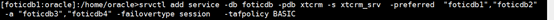 srvctl add service -db foticdb -pdb xtcrm-s xtcrm_srv -preferred "foticdb1","foticdb2" -a "foticdb3","foticdb4"-failovertype session -tafpolicy BASIC