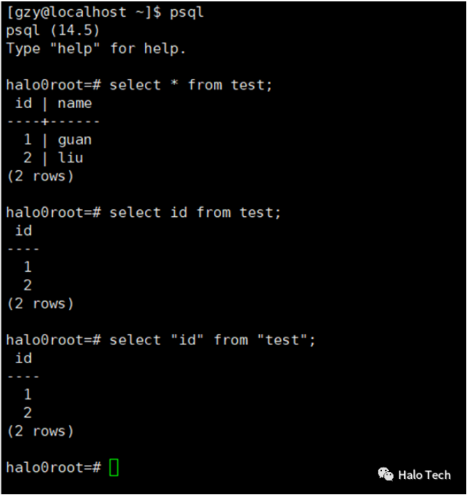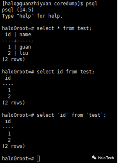 select ‘halo’;