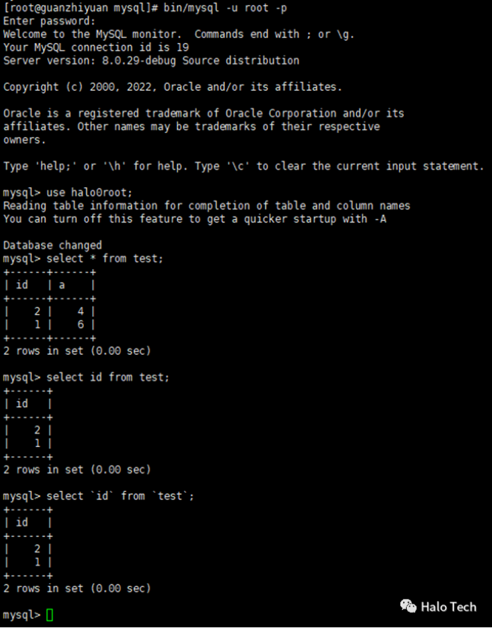 select `id` from `test`;