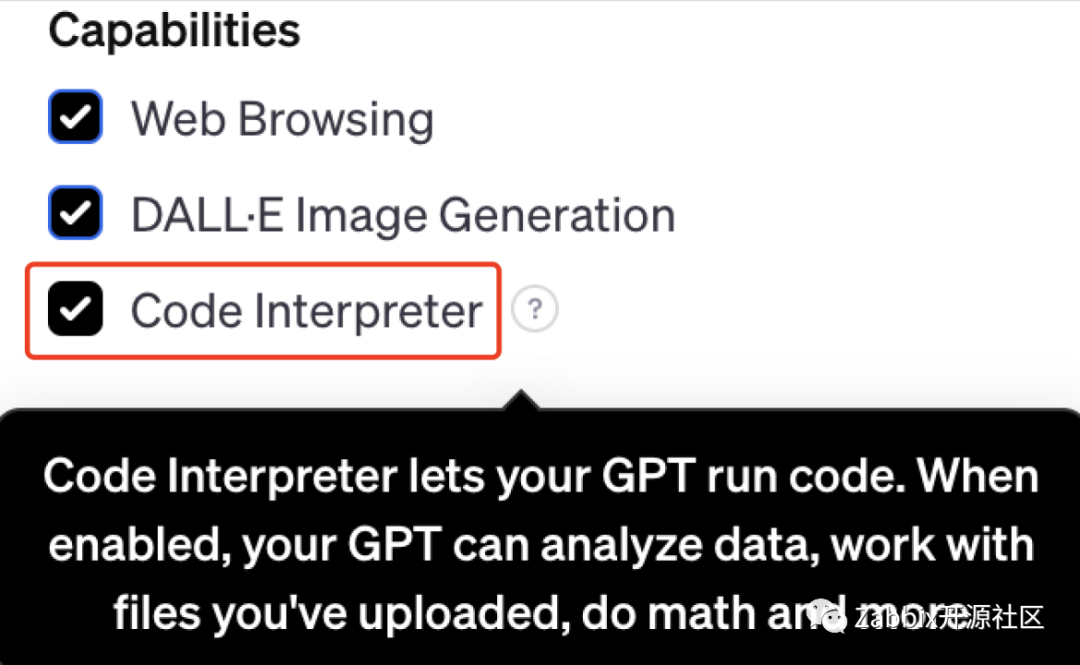 注意:部分文件需要编码能力,所以建议勾选Capabilities下的Code Interpreter选项。