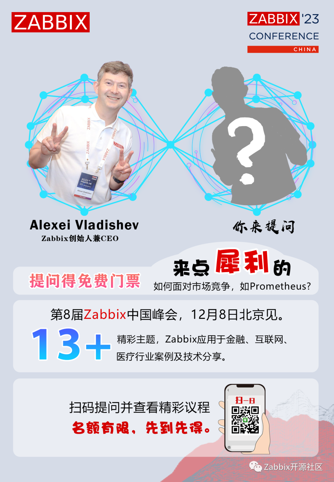 本文作者戴潇逸将在第八届Zabbix中国峰会演讲分享更精彩内容,13+精彩主题,提问得免费门票,扫码报名!