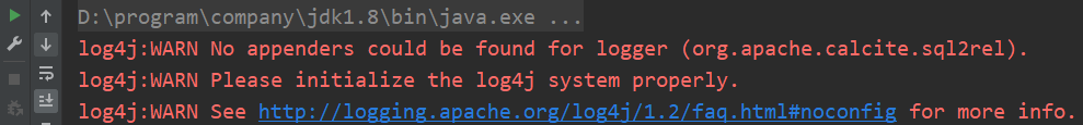 log4j:WARN No appenders could be found for logger (org.apache.calcite.sql2rel).