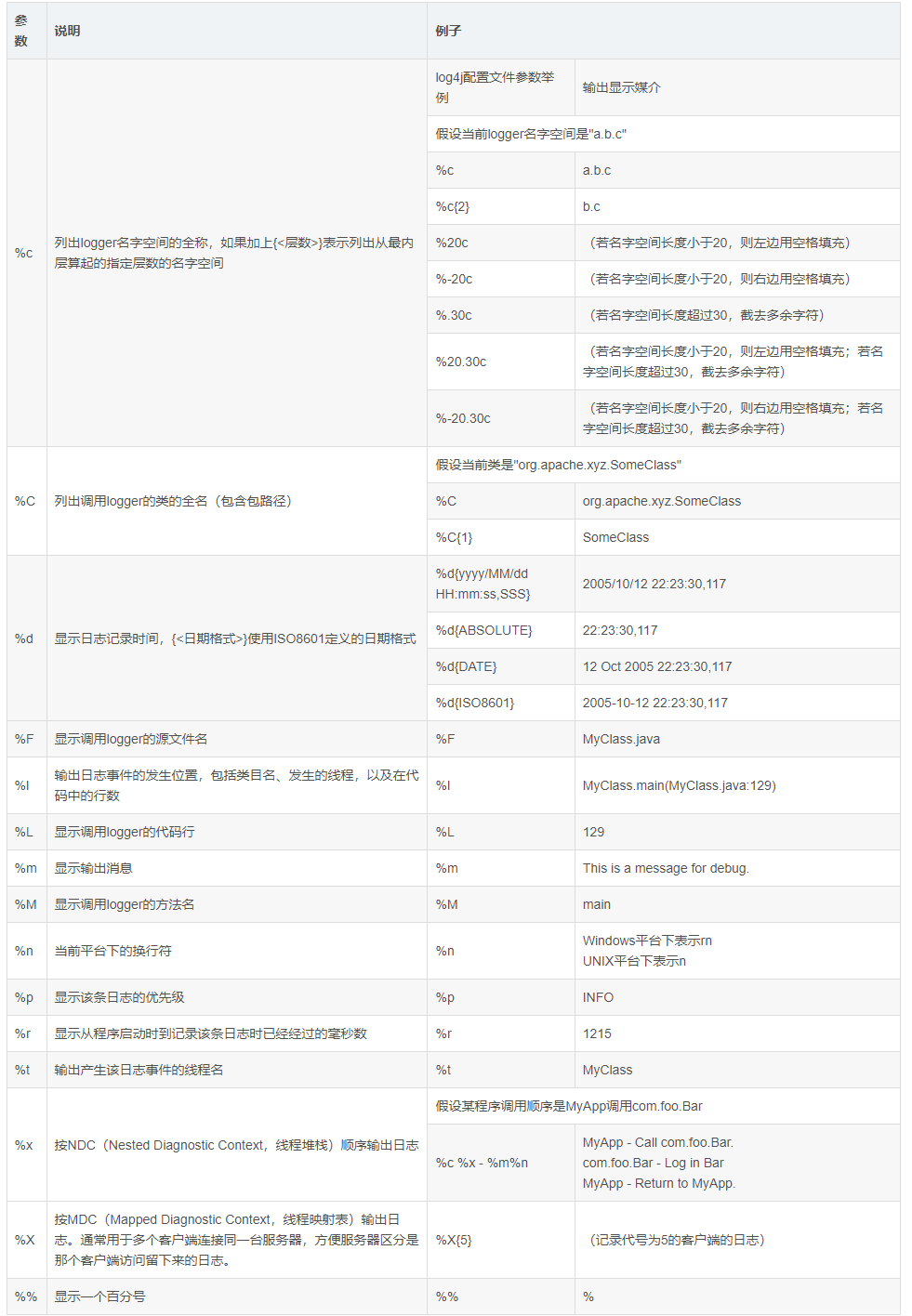 完整参数可查看官方文档:https://logging.apache.org/log4j/2.x/manual/layouts.html#PatternLayout