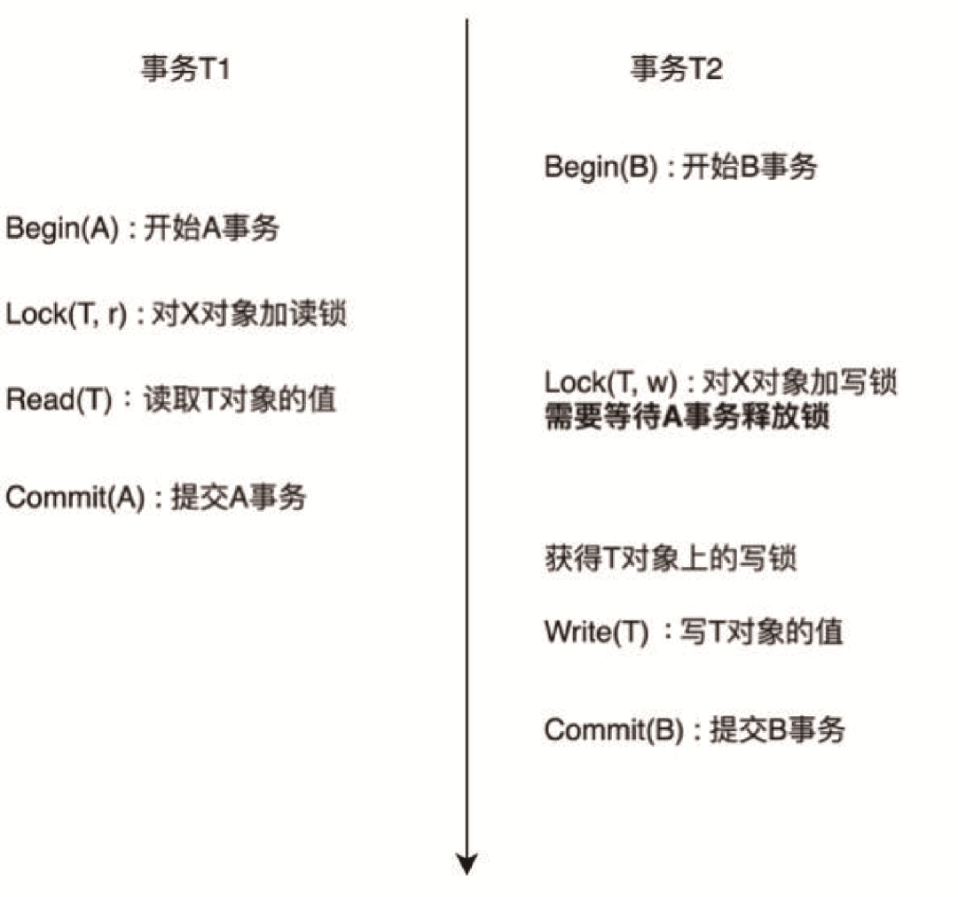 如果有两个事务T1和T2,T1先对X对象进行了更新(更新操作会产生X_old和X_new两个版本),然后T2去读X对象,由于T1没有提交,且当前的隔离级别是Serializable,所以T2读到的应该是T1更新前的X对象,也就是读取到的永远是X_old,这时候能够保证并发事务的执行结果和T2在T1之前执行等价。