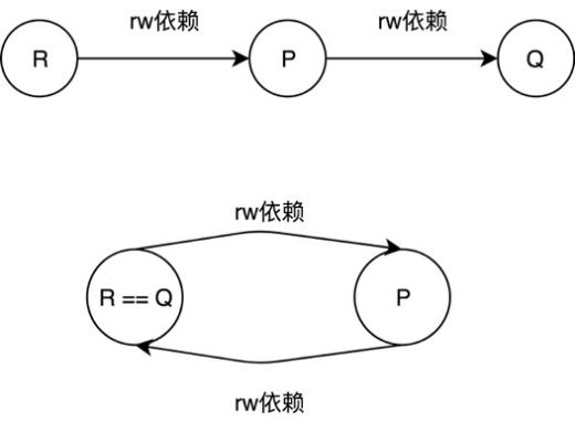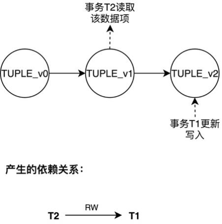 而在多版本并发控制的情况下,rw依赖没有这种限制,因为读操作可以读到写操作前的历史版本,从而形成rw依赖。