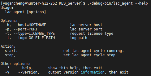 lac_agent是提供给客户端使用的客户端工具,用于给暂不支持LAC客户端功能的KES申请license,使用方法如下: