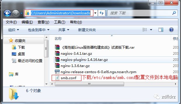 输入命令sz /etc/samba/smb.conf,这样就把指定的文件下载到之前指定目录。