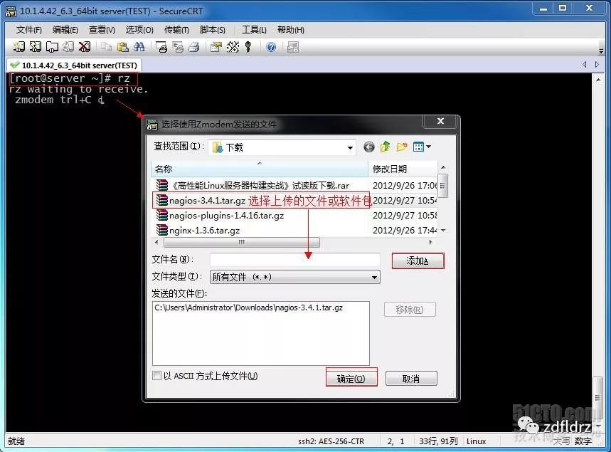 将下载好的文件保存到u盘或者其他介质上,然后使用rz命令上传,此处来个插曲,说说上传下载命令: