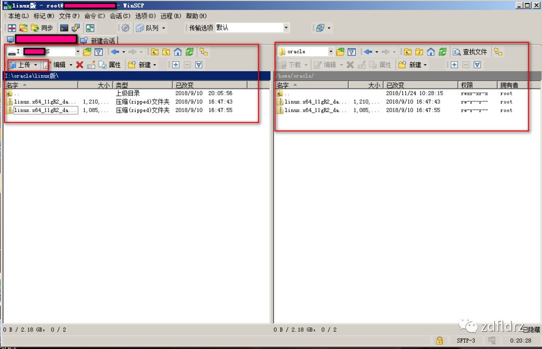 在文件上传的过程中遇到很多问题,首先是传到80%左右的时候就卡住了,每次都是如此,然后搜了很多,有些说使用rz -e,rz -d等,使用了rz -de上传,同样卡死,偶尔还是报错连接秘钥不符等错误,使用df -h 查看空间,剩余空间足够,最后无奈,使用winscp工具成功上传