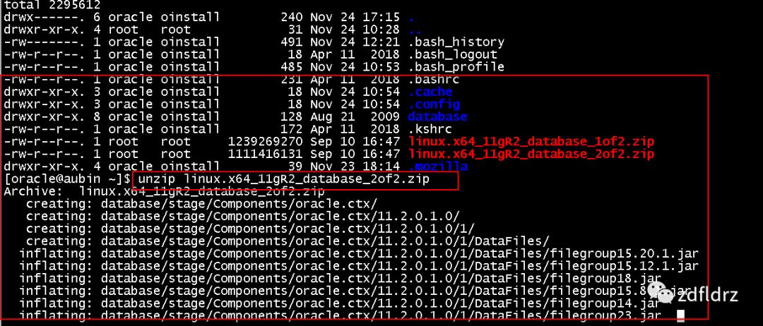 #unzip linux.x64_11gR2_database_2of2.zip