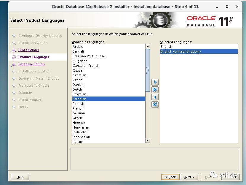 23、添加语言,在Available Languages中点选English、点击两个框中间的>,将选中的语言加入到右边的Selected Languages中,然后点击Next。