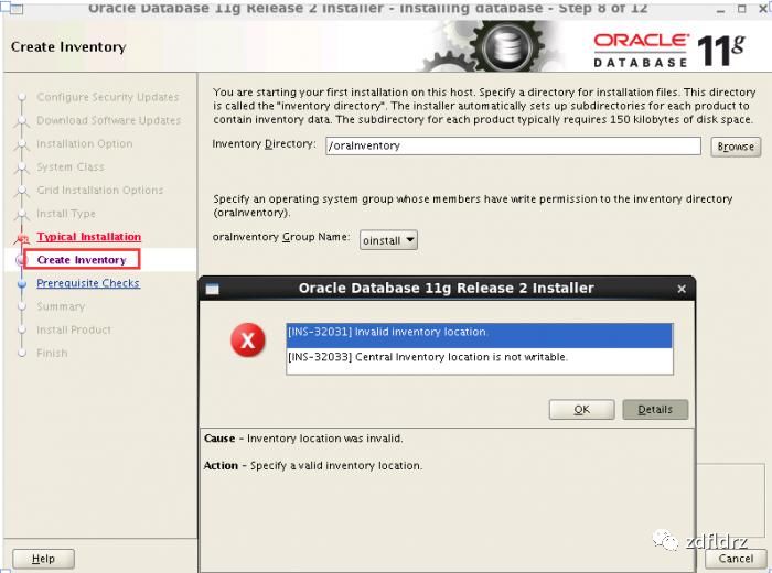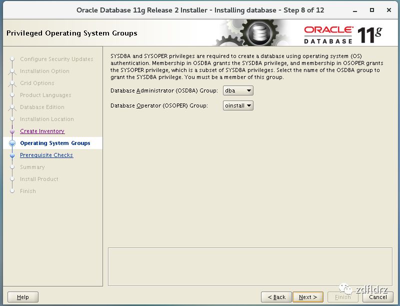 26、选择安装日志目录,选择dba组,如下图所示: