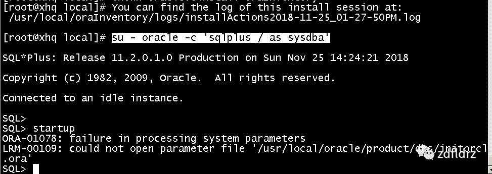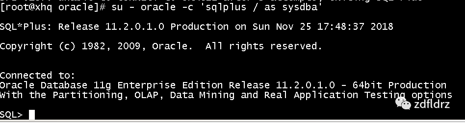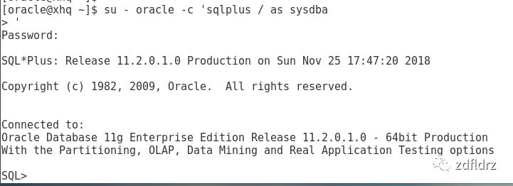 命令:su - oracle -c 'sqlplus / as sysdba'