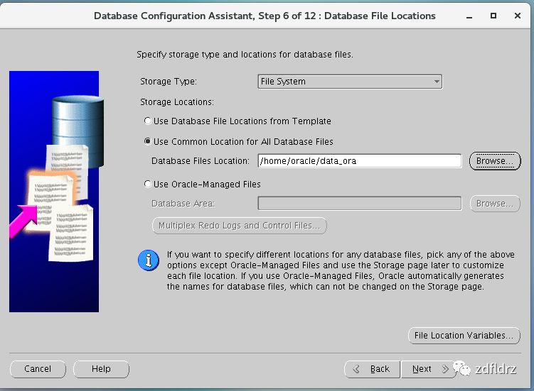 55、数据库文件安装的位置,选择 oracle/data_ora 下