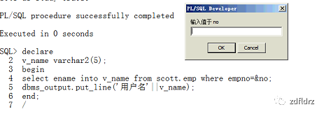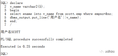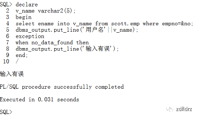 3、包含定义部分、执行部分、例外处理部分的plsql块(即完整的plsql块)