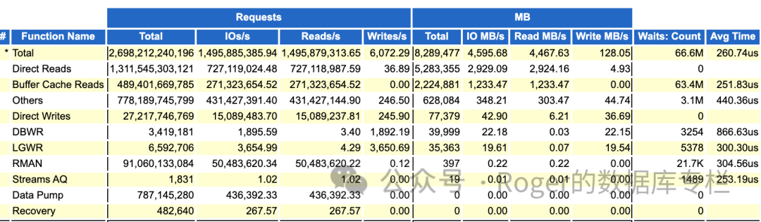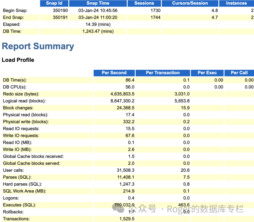 这份Oracle AWR 其实并不算非常大型的系统了,这里完再给大家看一份更为夸张的数据。