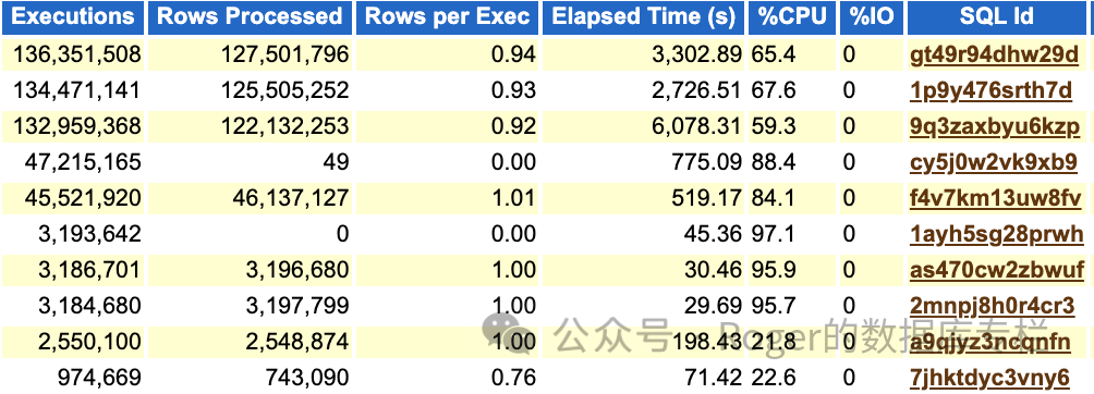 随手转了下这份AWR报告,没想到群里有眼睛非常尖锐的朋友居然发现里面有TOP SQL是我司 zCloud 的监控SQL,这里来看看(这里插播一个广告,看上去这是一份证券行业性能数据,据称zCloud目前已应用国内超20家券商客户)。